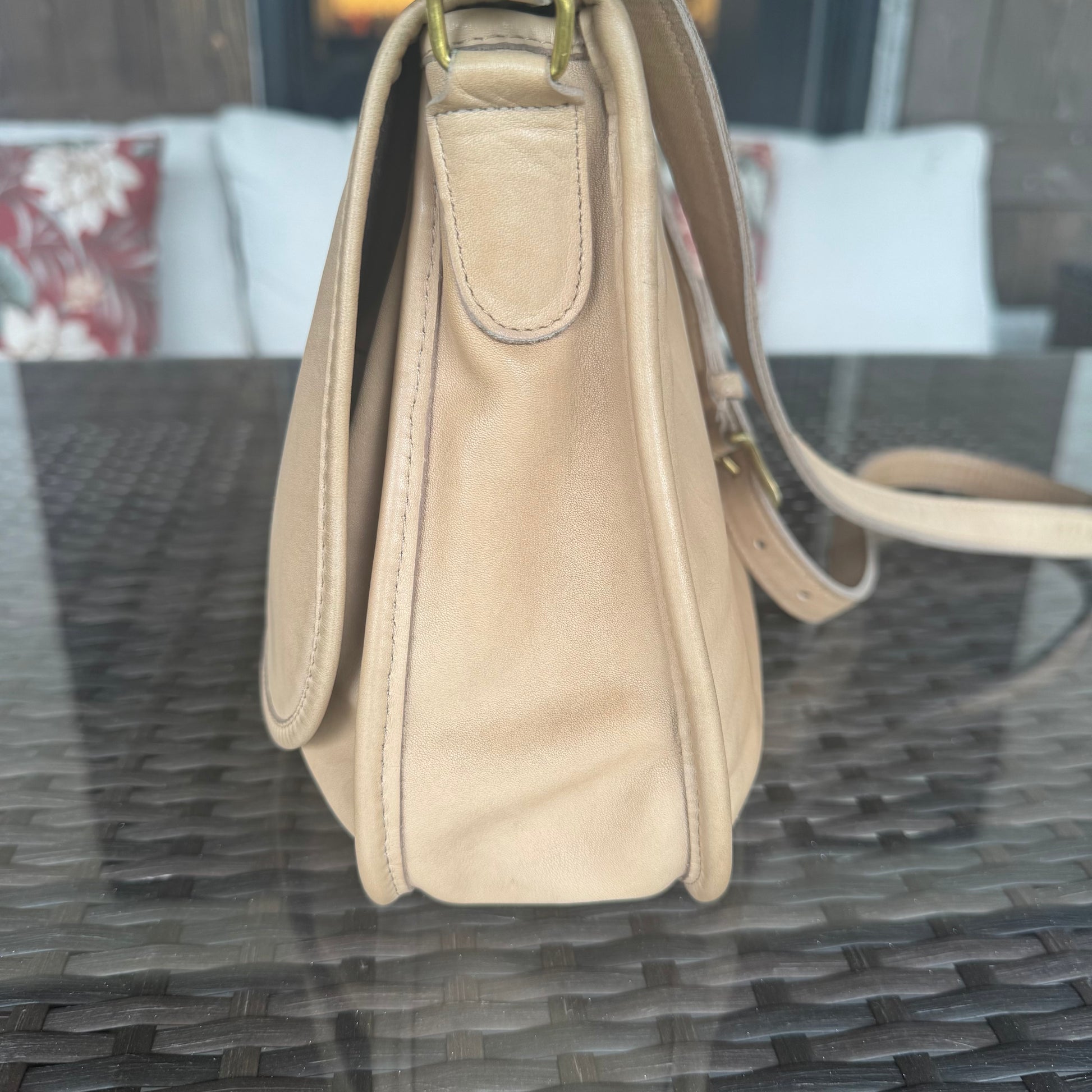 From Vintage Coach's late 80's Lightweight Leather Line, this is the #4050 Shoulder Bag in Taupe, made in the USA. Not to be confused for the #4025 Shoulder Pouch (check out video below).
