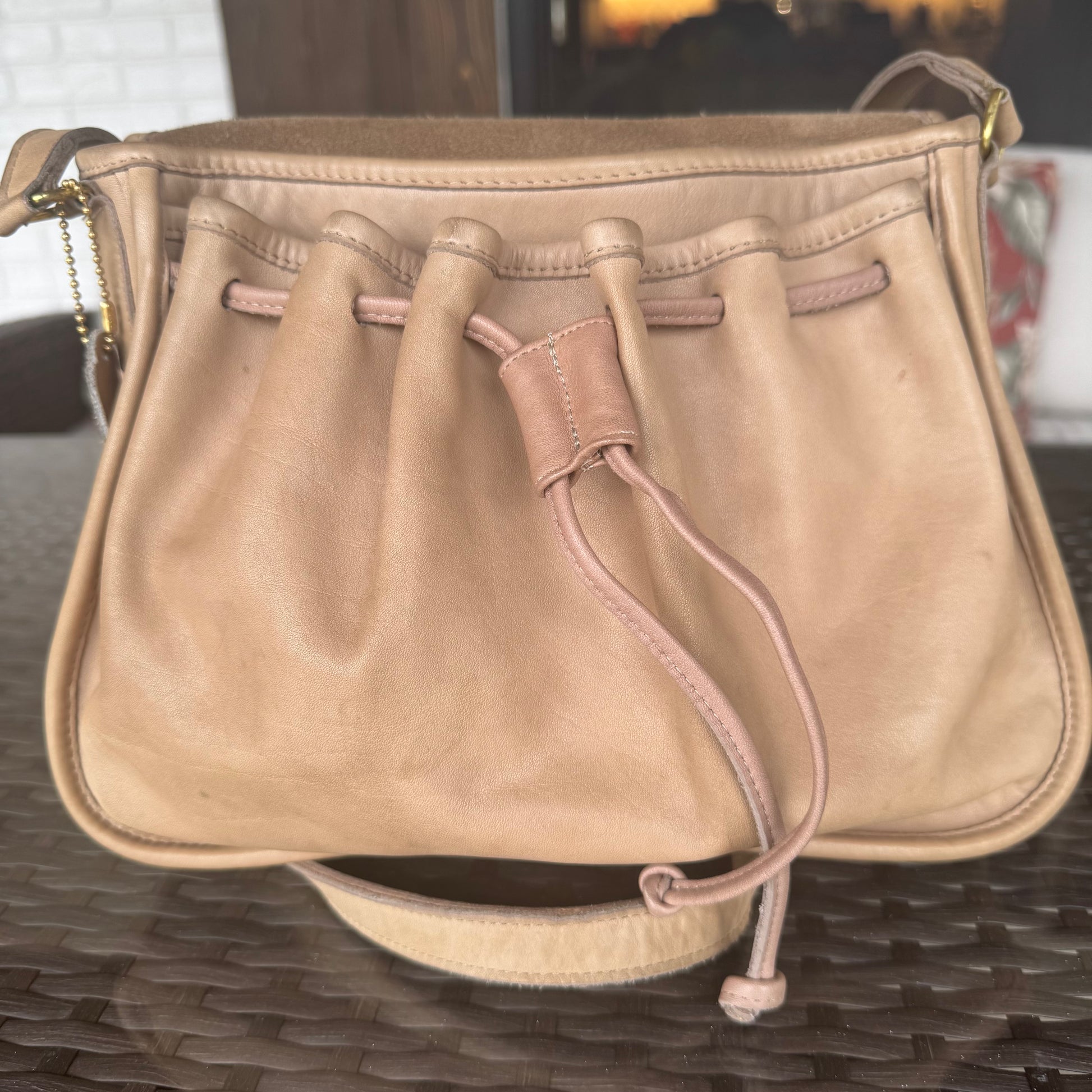Vintage Coach #4050 Drawstring Shoulder Bag in Taupe Lightweight Leather